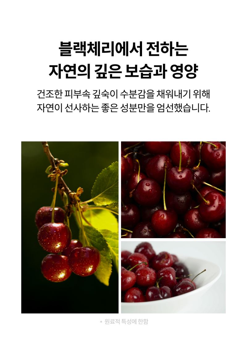 天然成分配方:富含黑櫻桃萃取、乳木果油與甜杏仁油,具高效保濕與抗氧化功效,能改善乾燥粗糙,重拾柔嫩水潤感。